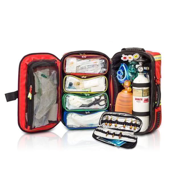 Advanced Life Support (SVA) emergency briefcase . Its opening with a drop-down flap allows access to the necessary instruments for action in different emergency scenarios, locating the spaces in such a way as to facilitate their rapid identification, and therefore their extraction.