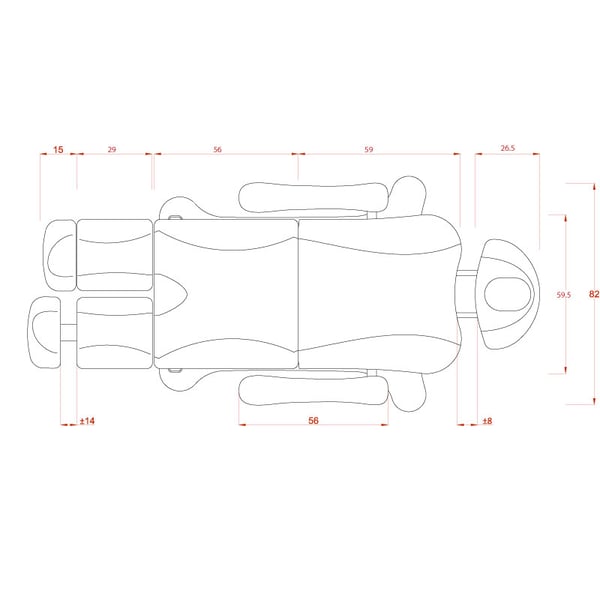 height, backrest and seat inclination. It has folding armrests and adjustable headrest, footrests that can be adjusted in height independently by means of a gas piston.