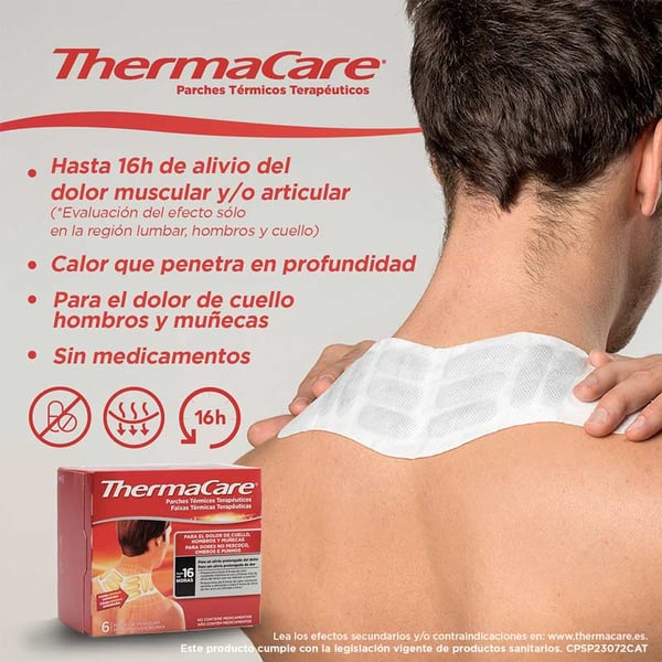 Relieve neck, shoulder and wrist pain with ThermaCare therapeutic heating patches . Designed specifically for these areas, these patches provide up to 16 hours of long-term pain relief without the need for medication . ThermaCare offers a natural and effective solution to relieve muscle and joint discomfort, ideal for those looking for long-lasting and safe relief.