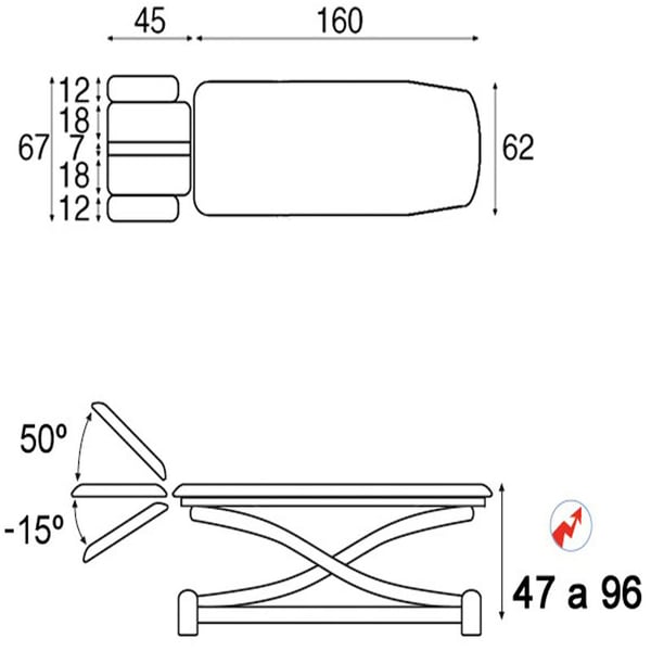 Two-body Ecopostural electric stretcher: With scissor structure, rectangular plug head with armrests and peripheral