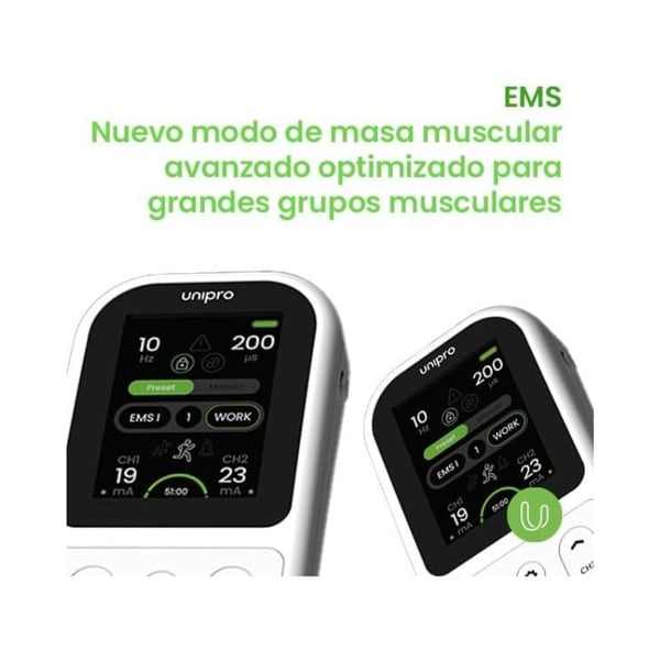 Unipro Electrostimulator: TENS, EMS, Interferential, and Microcurrents. Electrotherapy for Pain Relief and Muscle Rehabilitation